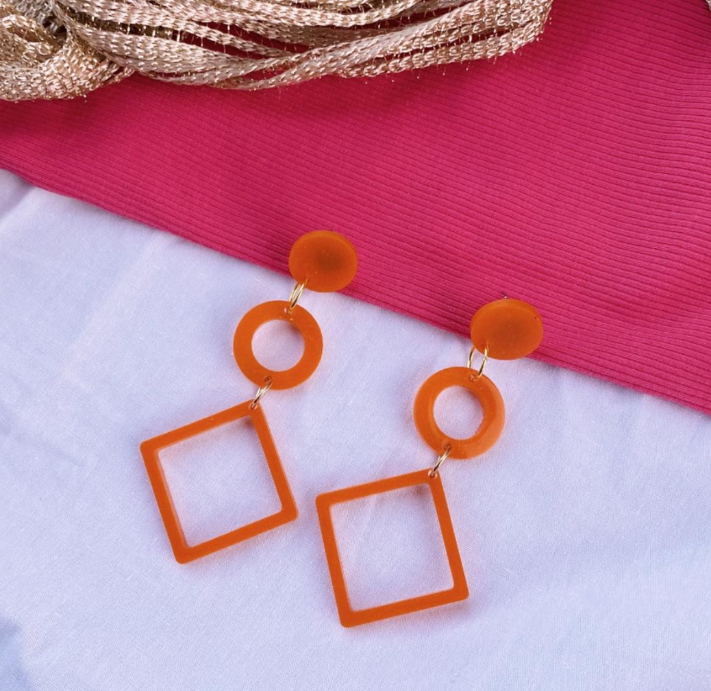 Una celebración de la geometría y el color en cada detalle. Estos pendientes están formados por formas geométricas unidas mediante argollas, creando un diseño moderno y dinámico. Disponibles en una amplia variedad de colores, son una pieza versátil que se adapta a cualquier estilo, añadiendo un toque único y vibrante a tu look.